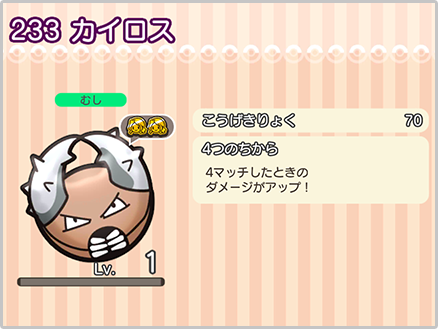 カイロスを4匹並べて消したとき、相手に与えるダメージがアップ!!