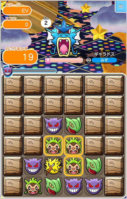 ギャラドスを5匹並べて消すと、野生のポケモンに与えるダメージが3倍になるという、強力なもの!