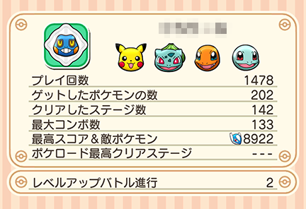 最高スコアと、そのステージのポケモンが表示されるほか、ポケロードやレベルアップバトルの進行状況も新しく表示されるように!