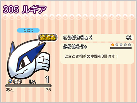 ※「スキルパワー」は、ルギアをゲット後に同じステージに再挑戦することで落とすことがあります。