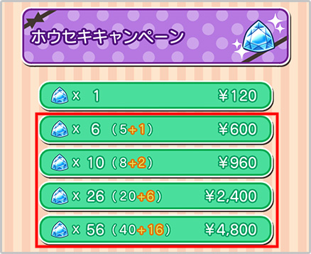 ※キャンペーンは2つの期間に分かれておりますが、ホウセキのプレゼントは全期間で1回のみとなります。
