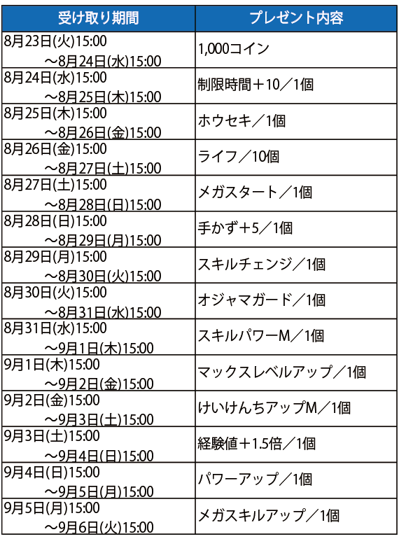 ※各日15:00~翌15:00に、プレゼント内容が切り替わります。