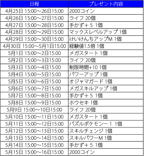 期間中、毎日『ポケとる』にログインするだけで、日替わりで毎日何かをプレゼント!