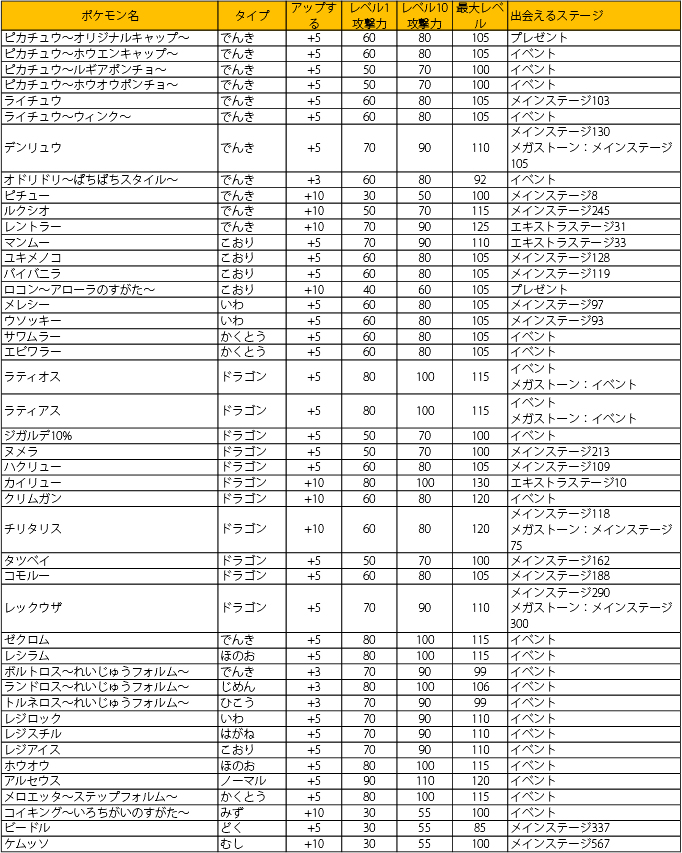 ●最大レベルがアップするポケモン (2017年6月13日現在)