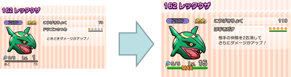 レベルMAXになったレックウザの攻撃力は、70⇒110にアップ!