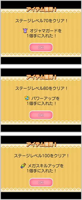 レベルアップステージをクリアし、あるレベルに達するごとに、ごほうびがもらえる!